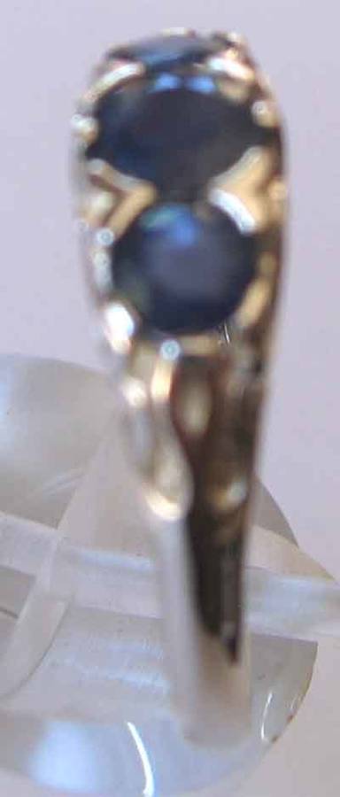 A sterling silver ring - stamped 925 , is set with one piece of 5.00 mm round cut blue sapphire and 2 pieces of 3.50 mm round cut blue sapphires , total carat weight - + 1.30 ct., all natural stones , quality - deep blue color and good lustre.
