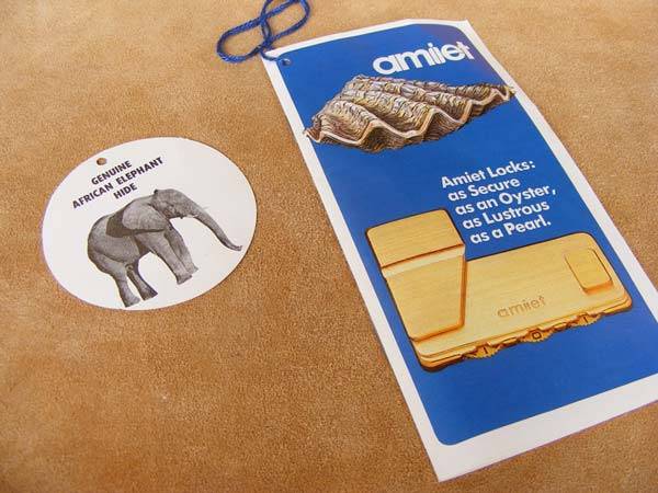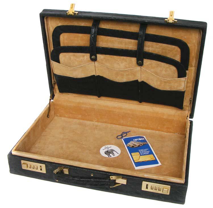 Made from genuine African elephant hide and fitted with superior Amiet combination locks in a brushed gold tone and sporting an interior of genuine leather in a velour camel finish.