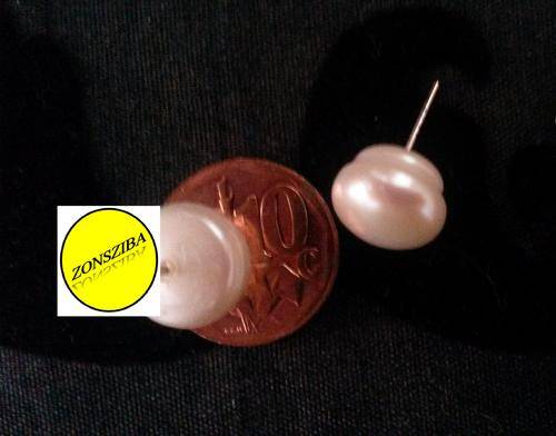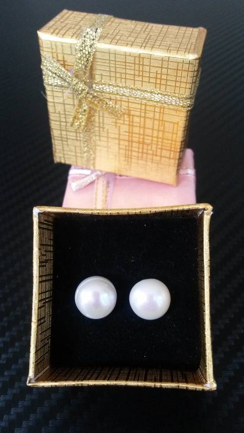 Genuine fresh water pearl earrings 9-10mm. They have a white/cream pink colour depending on the light and the pearl. They are beautiful and a stylish accessory for any occasion. They are not perfect for they are genuine.