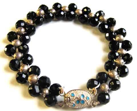 This bracelet is made of 40 pieces of 6.00 mm round faceted black onyx beads & with 19 pieces of 5.00 mm silver beads and sterling silver, clasp. Same as the image. The bracelet measures 20.00cm long and weight 19.28 grams .Lovely In perfect condition. Thanks for viewing.
