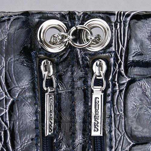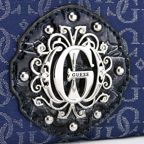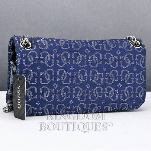 | Fine quality canvas outer. Fold snap closure. Guess Crown emblem in front of the bag. Silver stud & ring hardware. G monogram accross. Double Chain handle. Great with casual fashion. Newest Collection. Interior: Two zip pocket. Sparkling inside fine vinyl | |