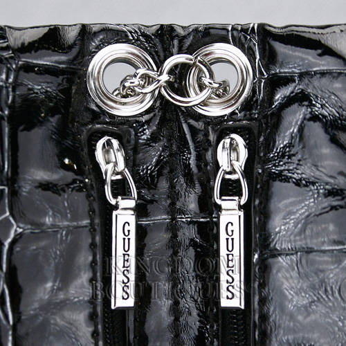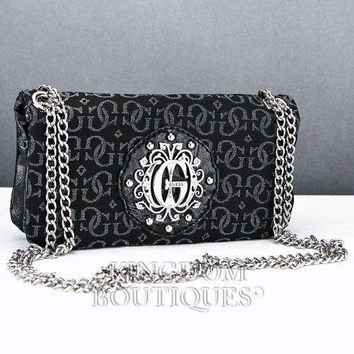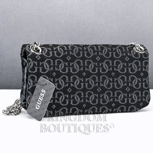 Fine quality canvas outer. Fold snap closure. Guess Crown emblem in front of the bag. Silver stud & ring hardware. G monogram accross. Double Chain handle. Great with casual fashion. Newest Collection. Interior: Two zip pocket. Sparkling inside fine vinyl. | |