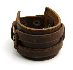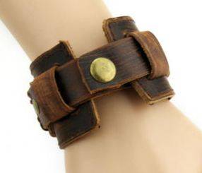Genuine Leather Bracelet Wristband - unisex (BROWN)