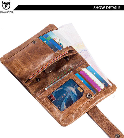 BULLCAPTAIN 2019 Trifold Hasp Zipper Short Wallets for MEN Cow Leather CASUAL Wallet Money Purse Bag Card Holder Coin Pocket (BROWN) (QB01 SHU)