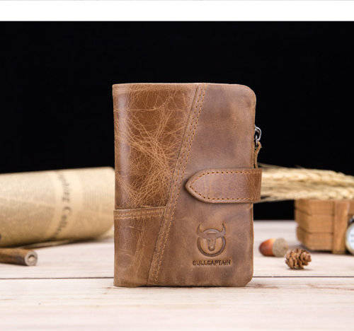 \BULLCAPTAIN 2019 Trifold Hasp Zipper Short Wallets for MEN(BROWN) (QB01 SHU)