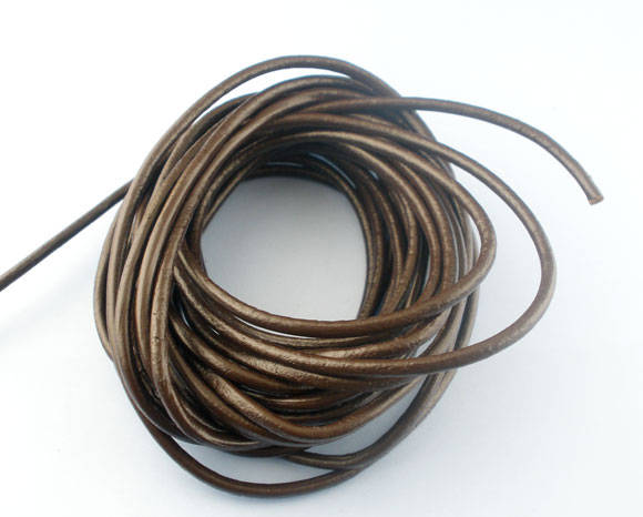 GENUINE LEATHER CORD FOR JEWELRY MAKING - 3mm - ROUND - COFFEE BROWN - SOLD PER METER