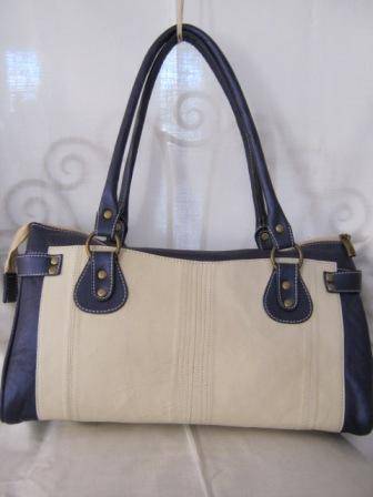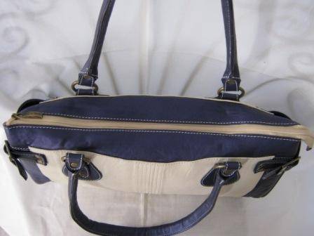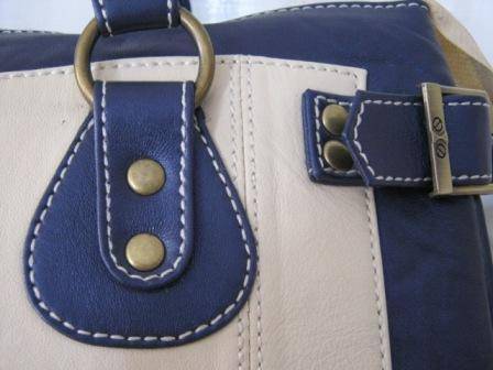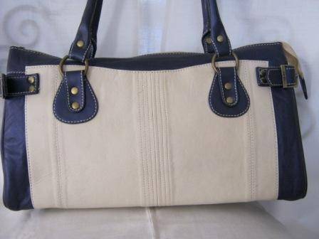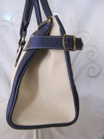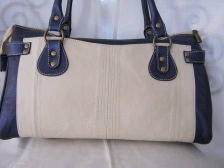 CREAM AND METALLIC BLUE HAND BAG (7 DAY MONEY BACK GUARANTEE)