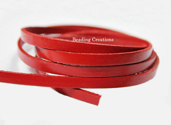 GENUINE LEATHER - HIGH QUALITY - 4mm - SOFT - RED - FLAT - STRIPS - SOLD PER METER