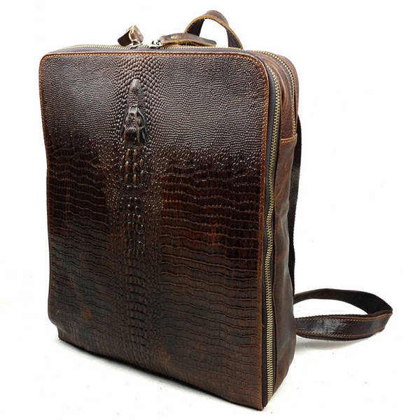 Genuine Leather Men Multifunctional Crocodile Pattern Travel Backpack