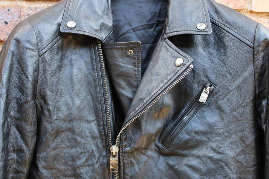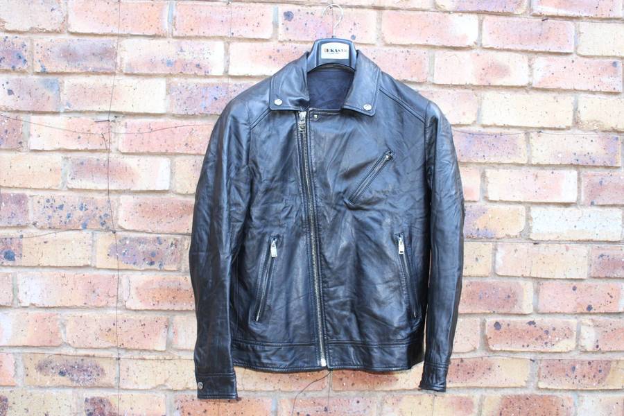 This is a genuine leather motorcycle style jacket in very good condition, suitable for both men and women.