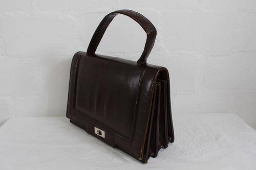 Beautiful, high quality authentic vintage brown leather structured bag.