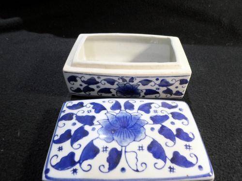 A beautiful Genuine Ming Blue Porcelain Trinket holder, measuring at 12cm x 8cm and 6cm high. This piece is in very good condition and a must have for your collection. Own it today. Bid now!!