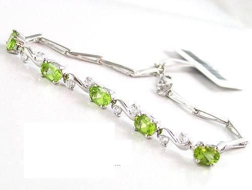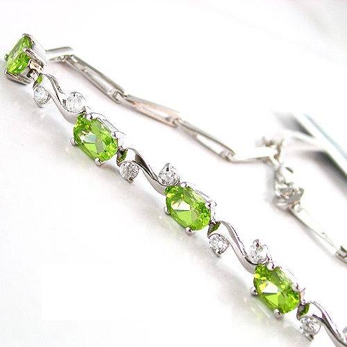 GENUINE PERIDOT & WHITE TOPAZ BRACELET .925 STERLING SILVER