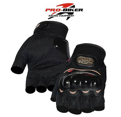Genuine Pro-biker Open Finger Black Gloves ~ XL