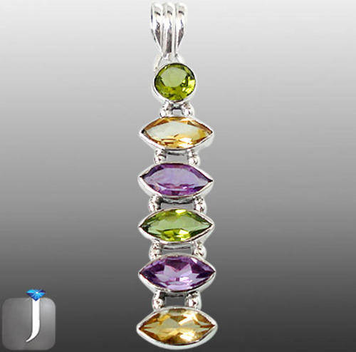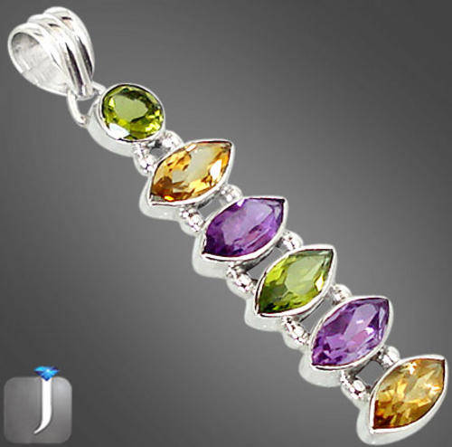GENUINE PURPLE AMETHYST, CITRINE, PERIDOT IN SOLID 925 STERLING SILVER ARTISAN PENDANT