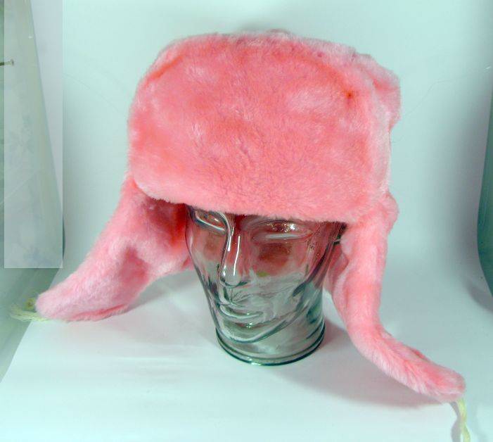 Genuine Russian Hat Ushanka. Pink Colour. Size: 62.