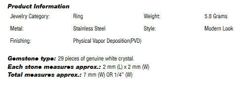 Genuine Stainless Steel Golden Ring - 7mm Wide Band, White Crystal Full Eternity. Size 9 / R½