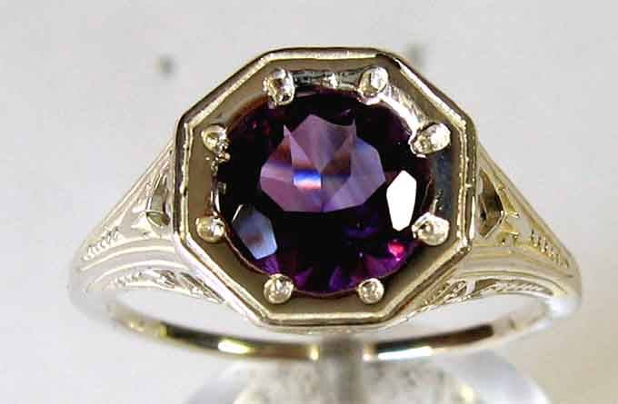 Absolutely incredible with a big amethyst that measure 8.00 mm round cut, weight - + 1.70ct.purple colour . This is a genuine amethyst stone , - very nice and the work is just amazing.