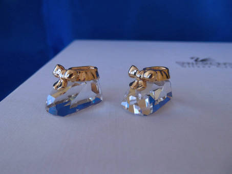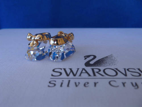 HAS LITTLE GOLD BOWS ON THE FRONT WITH THE SWAROVSKI SWAN ON THE TOP OF EACH SHOE - SO VERY CUTE