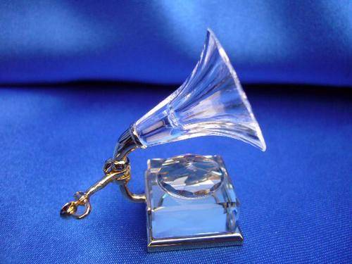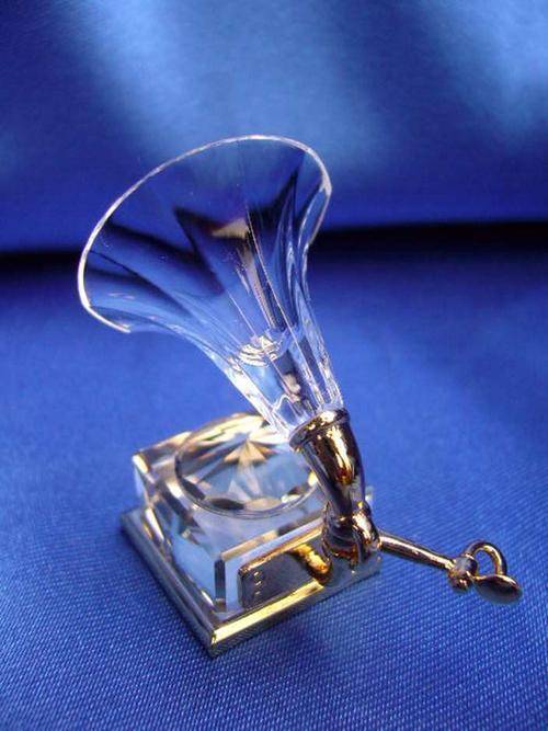 A CRYSTAL / GILT MINIATURE GRAMAPHONE