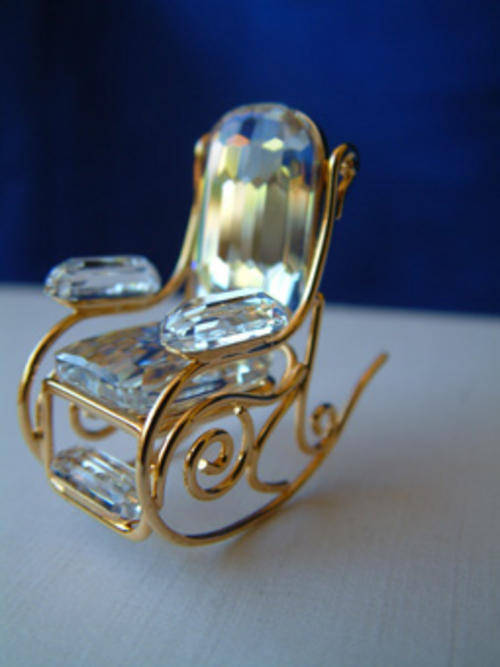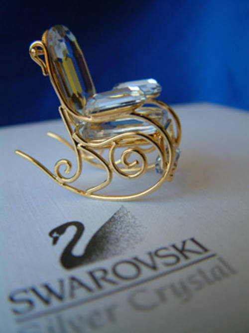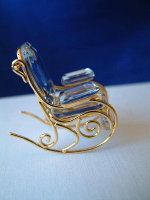 This retired Swarovski Crystal Moments rocking chair has gold metal detail and is approx. 1 ½” (30mm) tall. Part of the “Times Past” category,