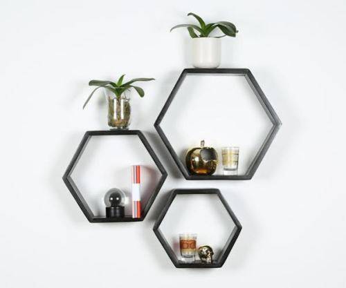 This set of modern geometric shelves are a great substitute for framed prints or wall hangings.