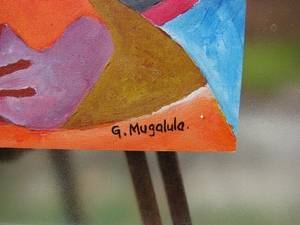 This Ugandan artist has been sentenced to 18 years in prison for murdering his step daughter in 2007. Measures 68cm x 46cm. Beautifully framed in non-reflective glass. Buyer collects.