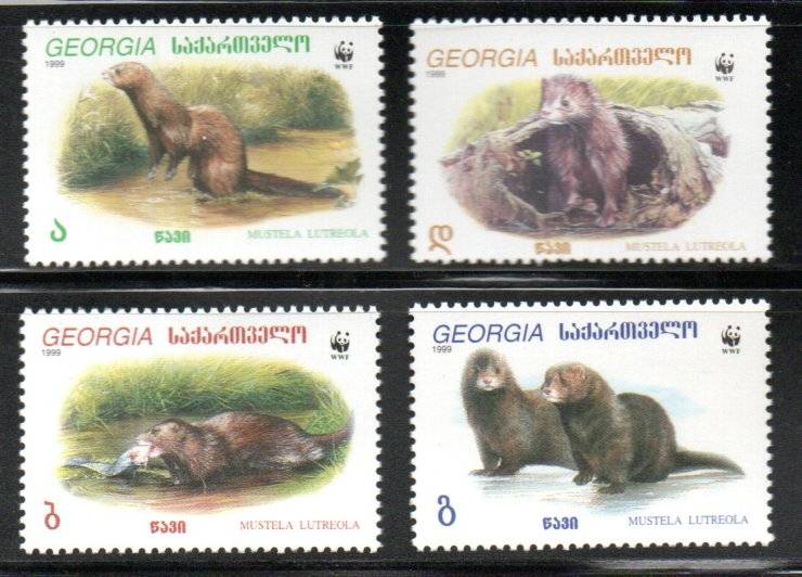GEORGIA 1999 THE EUROPEAN MINK (WWF) SET OF (X4) SINGLES UMM. AS PER SCANS. SG295/8. NICE THEMATIC. GEORGIA 1999 THE EUROPEAN MINK (WWF) SET OF (X4) SINGLES UMM. AS PER SCANS. SG295/8. NICE THEMATIC. GEORGIA 1999 THE EUROPEAN MINK (WWF) SET OF (X4) SINGLES UMM. AS PER SCANS. SG295/8. NICE THEMATIC.