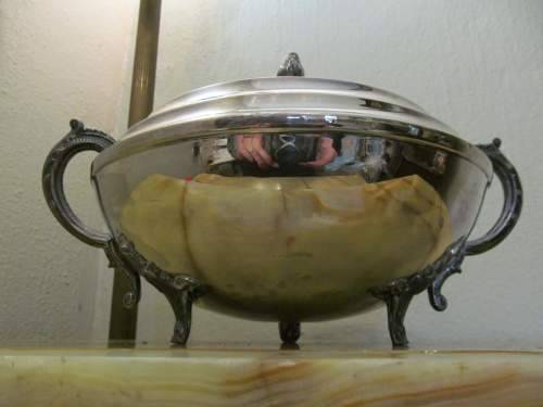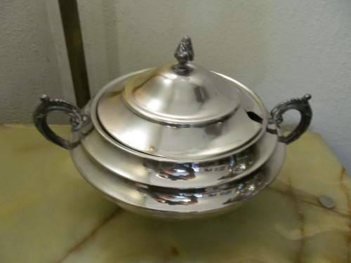 CONDITION : THE TUREEN MAY REQUIRE SOME POLISHING DUE TO SOME VAGUE VINTAGE PATINA HERE AND THERE AND A VERY SMALL DENT EXISTS ON ONE SIDE WHICH IS VISIBLE ON CLOSE INSPECTION, ASIDE FROM WHICH IT IS OTHERWISE IN PERFECT CONDITION WITH NO OTHER DENTS, RUST, DAMAGES ETC