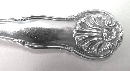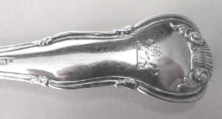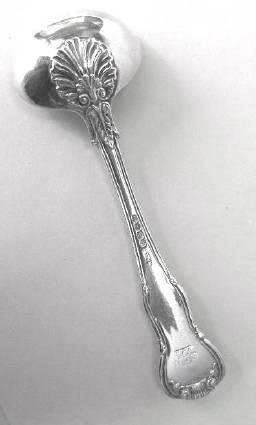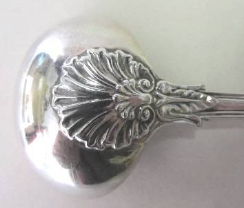 A hallmarked Georgian silver ladle made in London in 1824 by William Chawner. Fiddle, thread and shell design. Condition good. Length 190 mm; weight 95 g.