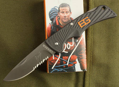 This listing is for 1 Gerber Bear Grylls folding pocket knife. The product of collaboration between Gerber and survival expert Bear Grylls, the Compact Scout Knife is a smaller version of the original Scout knife, featuring a thin, folding design for easy portability and storage--just tuck it in a pocket and you're ready to go. Its half-serrated, high-carbon, drop point stainless steel blade is ideal for edge retention and cutting rope. A locking blade feature and oversized finger notch in the grip provide additional safety. This knife comes with Bear Grylls' informative Priorities of Survival pocket guide, loaded with survival basics designed to help keep you alive until you can be rescued or rescue yourself. Great quality knife to use, add to your collection, or makes a great gift.