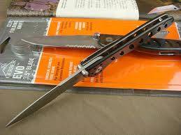 The GERBER Evo features Titanium nitride high carbon coated steel blade for strength and corrosion resistance and a liner lock mechanism for one-handed closing. The finger flip is designed for easy opening and the low rise pocket clip means easy carrying for everyday use.on coated steel blade