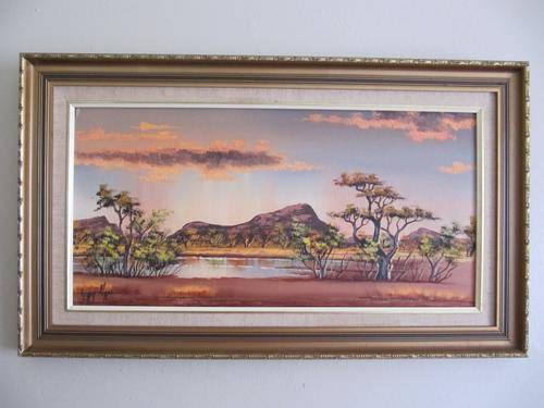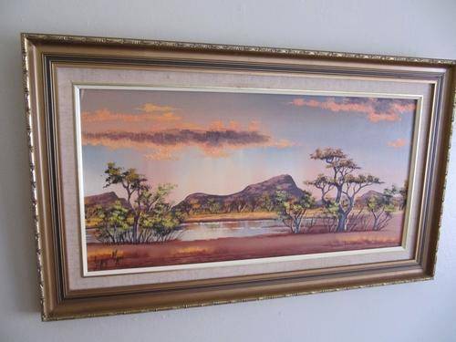 Gerda Mans is a well-known South African artist, with her art fetching high prices at auctions and galleries. Up for auction on Crazy Wednesday we have a large African sunset Landscape artwork by this artist - in mint condition. See photos for details!