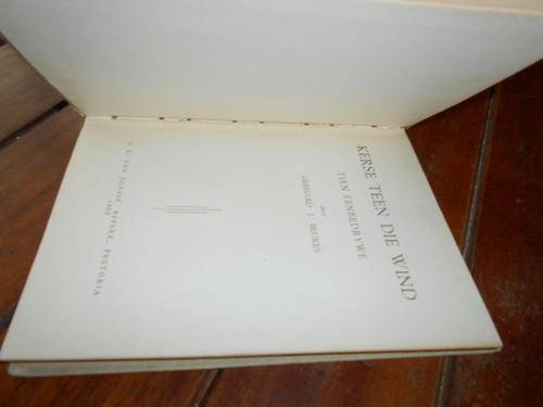 KERSE TEEN DIE WIND - tien eenbedrywe. (Inskripsie van vorige eienaar: Beaufort-Wes Dramatiese- en Musiekvereniging 1950. Van Schaik hardeband (1950) goed gebind, skoon teksbladsye, 206 bladsye, hardeband netjies reggemaak op rugstrook.