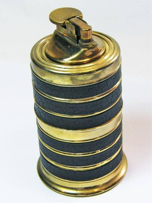 Vintage brass and leather table gas lighter - missing flint screw - as per photo