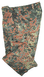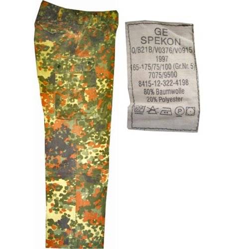 The super tough, German Flecktarn BDU pants. This is a great pants for working outside, hunting, or whatever.you do. Used Grade The current issue t. Made from cotton/poly . Good quality pants. flectarn is a derivative pattern from the earliest pattern developed by the german army. Genuine german army surplus. Please note that the pattern and shades may vary from one item to another