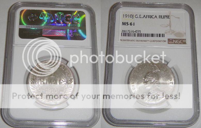 German East Africa // Deutsch-Ostafrika : One Rupie 1910 (J) : NGC graded MS61