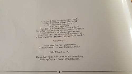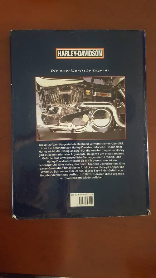 German Harley Davidson hardcover book (The American Legend). In excellent condition, with loads of bright Harley Davidson motorcycles photos on every 160 pages.