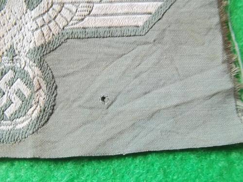 The eagle itself is in good condition but there are some small age holes in the base material. (see pics)
