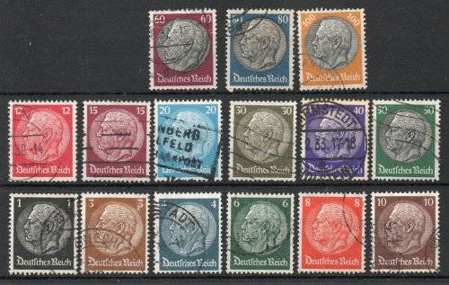 Germany 1933 Hindenburg set of 15 very fine used. SG 493B-509B. Cat £10,45 (2013)