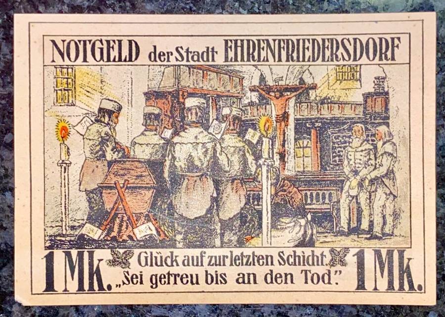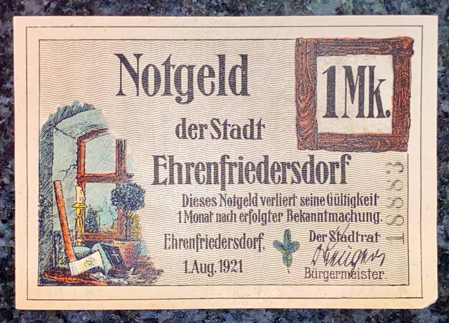 GERMANY - EHRENFRIEDERSDORF - 1 MARK 1921 AUNC NOTGELD (EMERGENCY MONEY) - AMAZING ART - GERMANY - EHRENFRIEDERSDORF - 1 MARK 1921 AUNC NOTGELD (EMERGENCY MONEY) - AMAZING ART -
