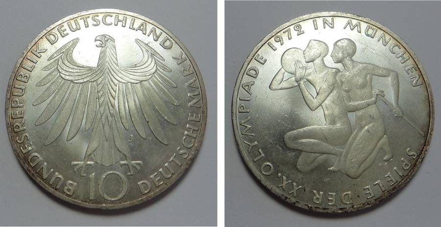 Germany: Munich Olympics Silver 10 Mark 1972 (J)