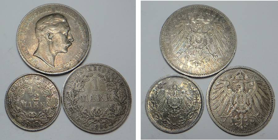 Germany: Wilhelm II Silver Set (½ Mark dated 1906 and 1 & 2 Mark both dated 1896)