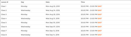 Students can attend 8 live lessons over 4 weeks and/or students learn at their convenience and pace via 24/7 On-demand access for the duration of the course.