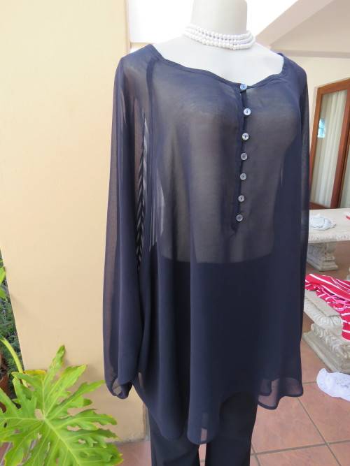 Get noticed in this sheer navy top by 'DONNA CLAIRE' in size 52/28.New condition.