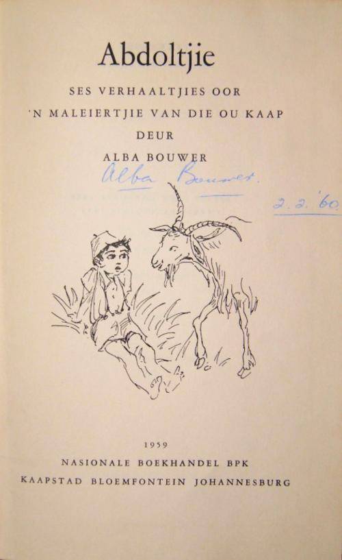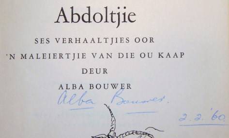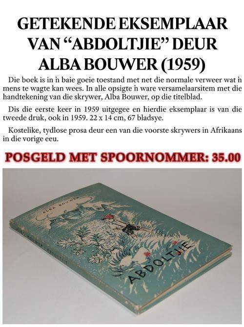 GETEKENDE EKSEMPLAAR VAN "ABDOLTJIE" DEUR ALBA BOUWER (1959)
