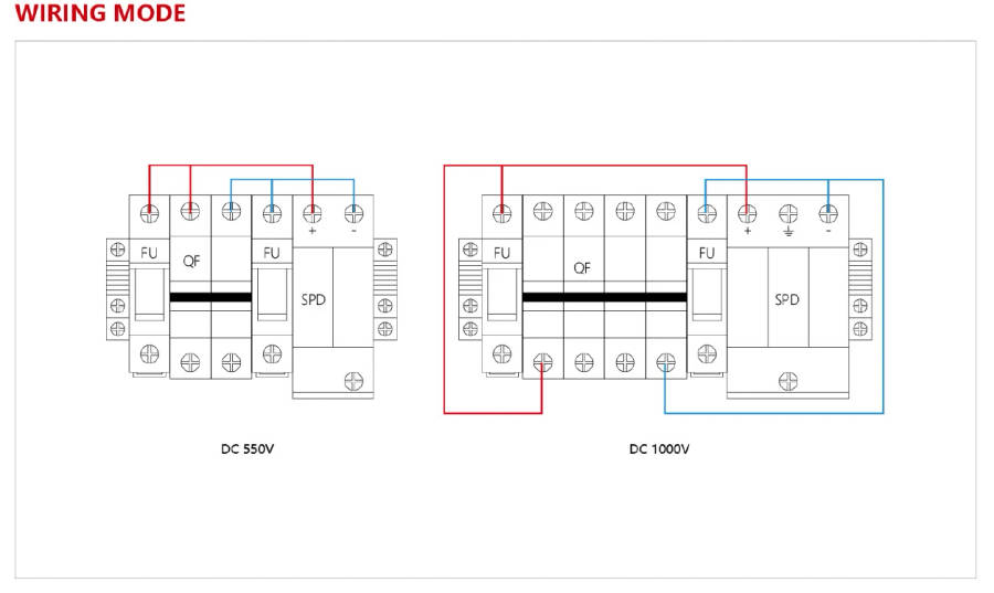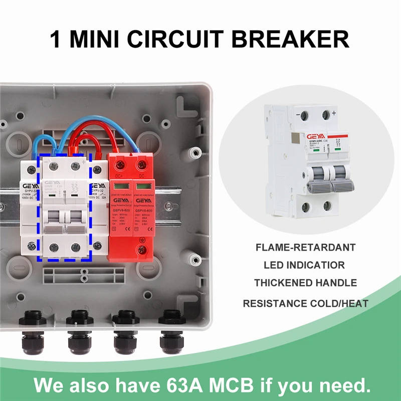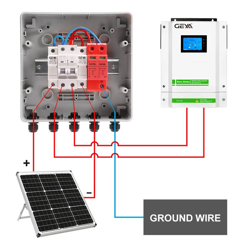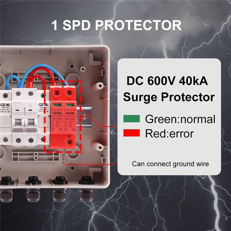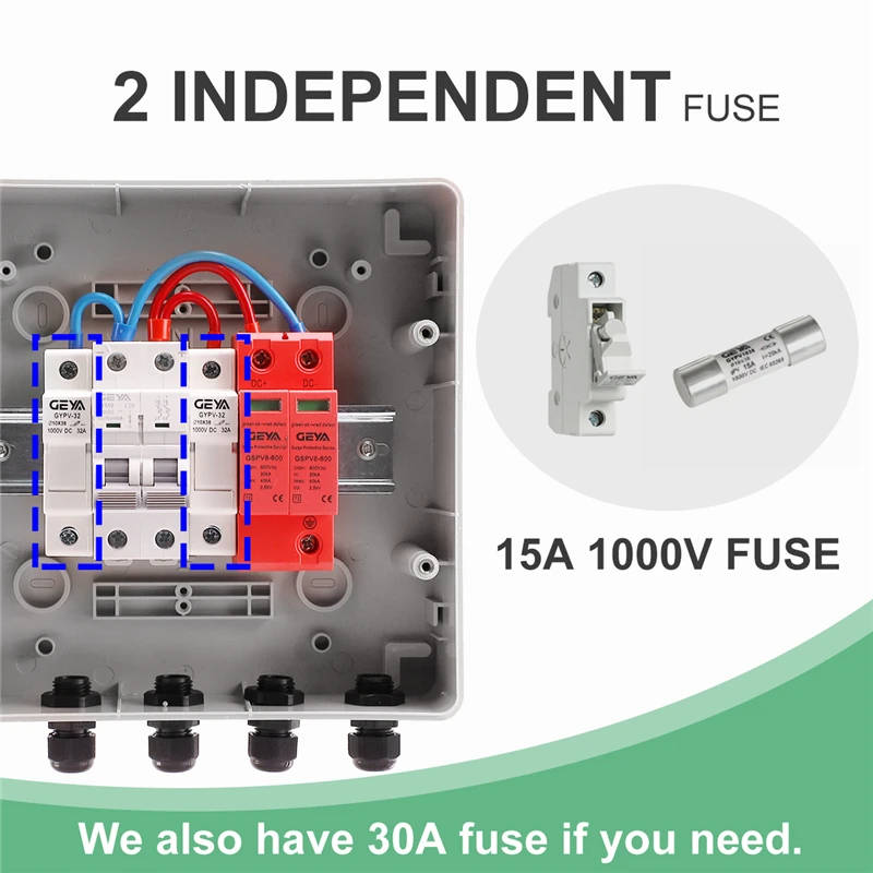 GEYA Solar PV DC Combiner Box 1in-1out 550VDC 15A Fuse SPD 2P Breaker Pre-Wired GYPV/1-1