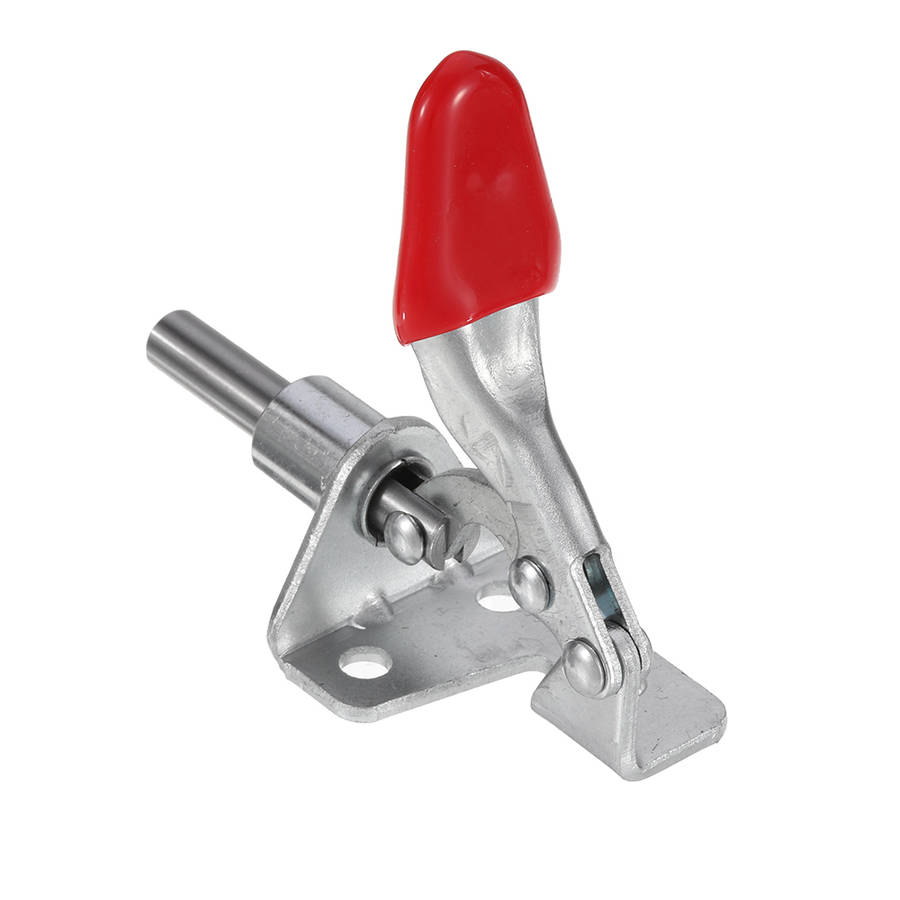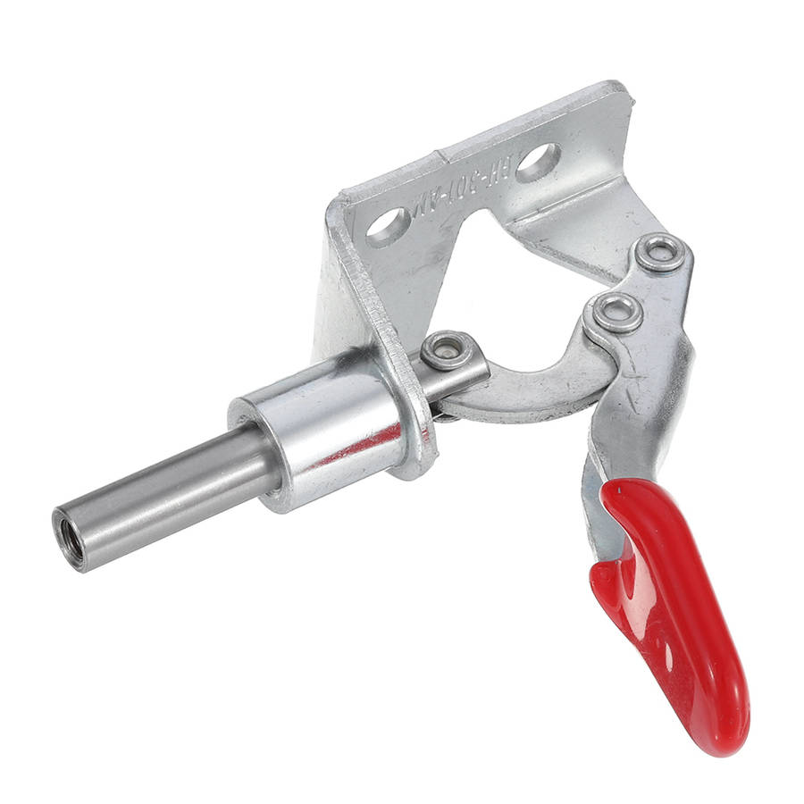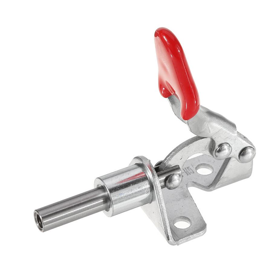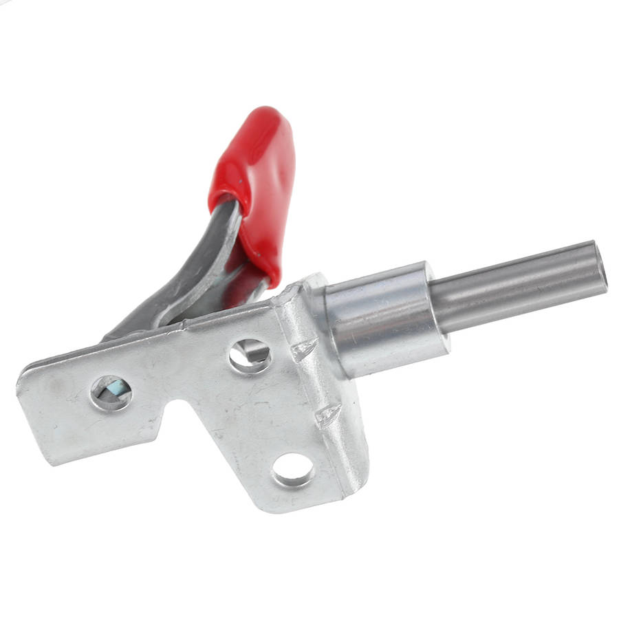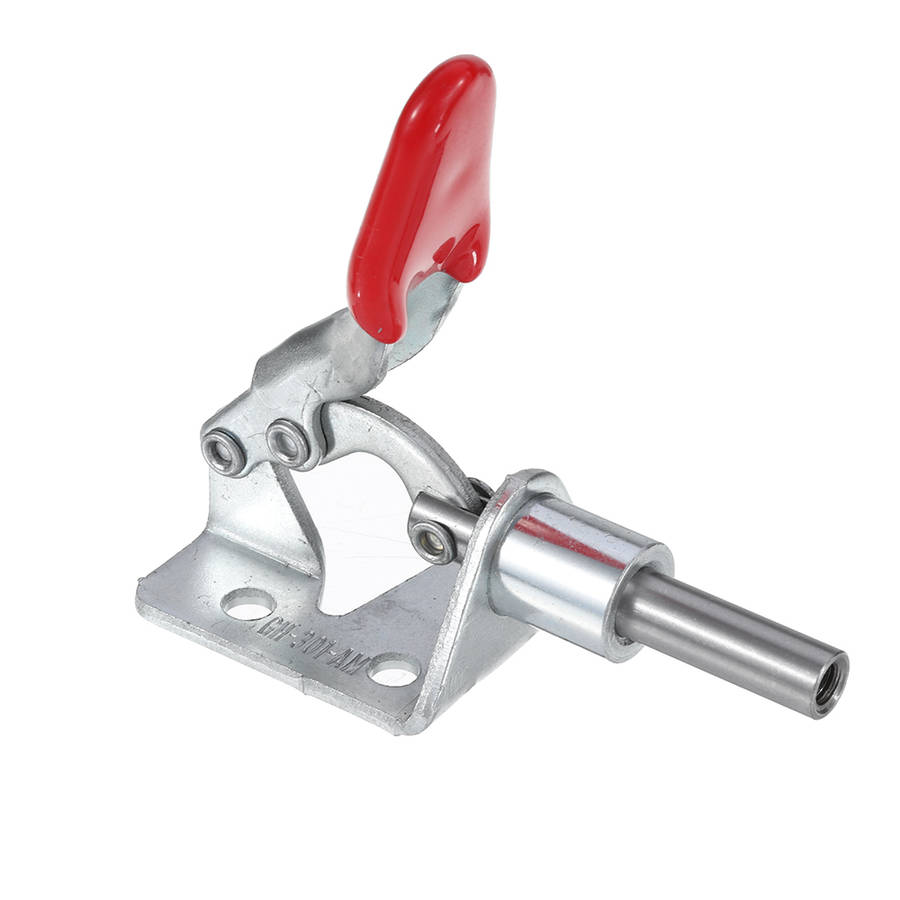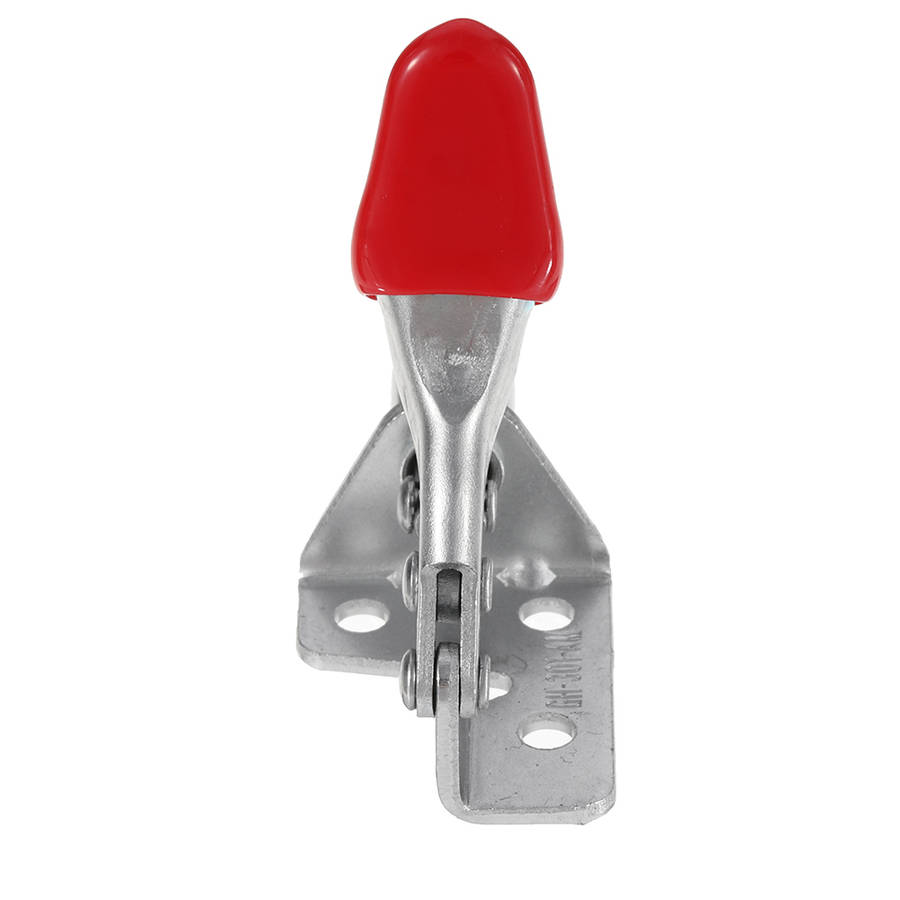 Description: GH-301-A 45Kg Hand Tool Toggle Clamp Jig Fast Compressor Push-pull Clamp Manual Fixture Specification: Model: GH-301-A Material: Hot rolled steel / stainless steel plates + rubber Cushion Holding Capacity: 45Kg Spindle Supplied: M4 x 20 Plunger Stroke: 1.6cm / 0.6in Handle Opens Angle: 190ᆪ Features: - Widely used in the manufacture or assembly of clamping, flip locks buckle luggage and other industrial, agricultural, testing. - Cold-rolled carbon Steel with Zinc plated coating for corrosion resistance. - Unique push/pull action Quick-Release Toggle Clamp, allows you to hold workpiece in a vertical position - A simple structure, easy installation,and plastic cover handle for easy, safe and comfortable operation. - Assembly, fixed clamping force is stable, safe, reliable, high efficiency, greatly reduce the various parts processing, assembly, fixed clamping operation time. Pacakge Included: 1 x Toggle Clamp More Details: