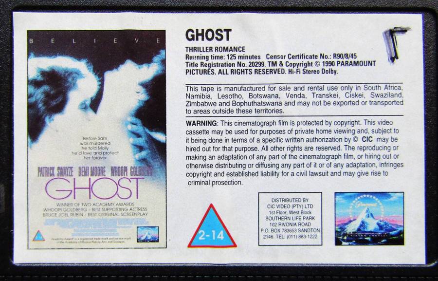 Ghost - Patrick Swayze - Movie VHS Tape (1990).