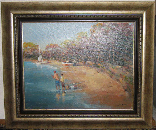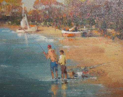 GIAN-PIERO GARIZIO (1931 - ) - OIL - FISHING ON THE BEACH